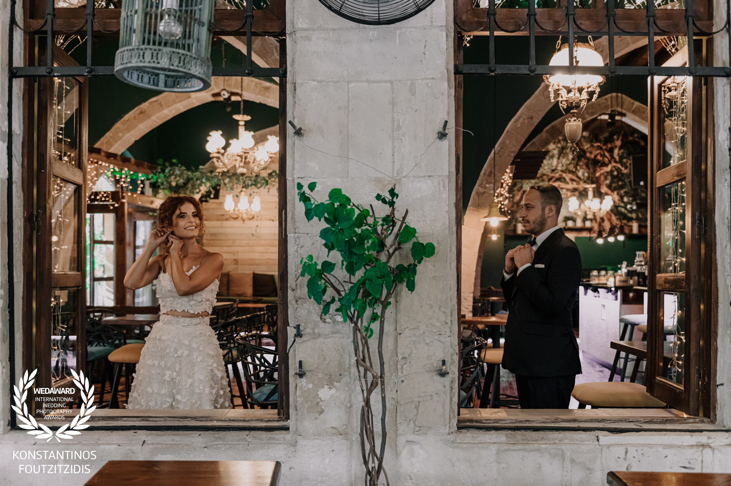 Through separate windows, they prepare for the same journey — a bride adjusting her earrings, a groom straightening his tie. Two souls, framed apart for a moment, yet already bound together in love, ready to step into forever side by side.
