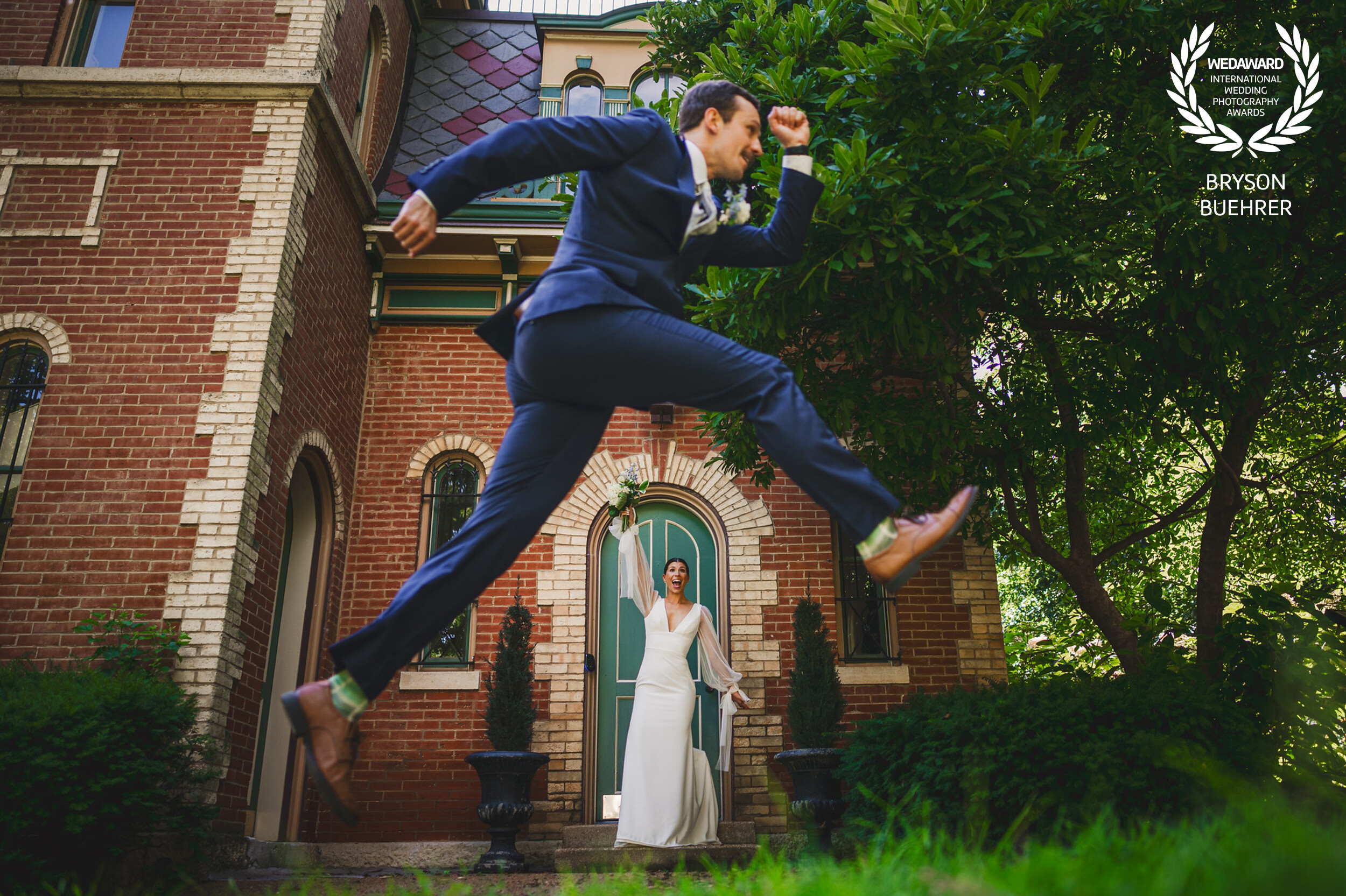 Not every wedding photo has to be a cuddle! I love compositions that play with perspective and movement, especially when the couple is posed far apart from each other. This couple is super fun and goofy, so a composition like this fit them perfectly.