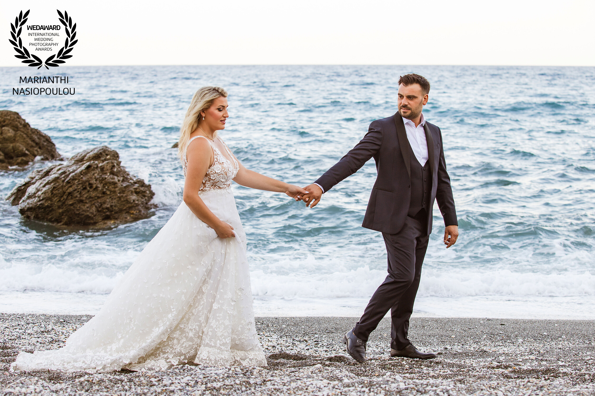 I captured this beautiful moment during an after-wedding photoshoot on a stunning beach on the southern coast of Attica, Greece.