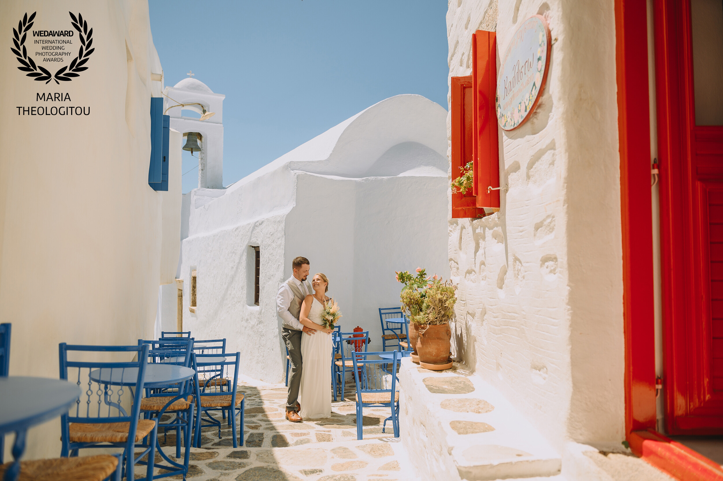 In the heart of Chora Amorgos, amidst whitewashed alleys and vibrant island colors, love unfolded gracefully, timeless, intimate, and forever framed by the Cycladic light!