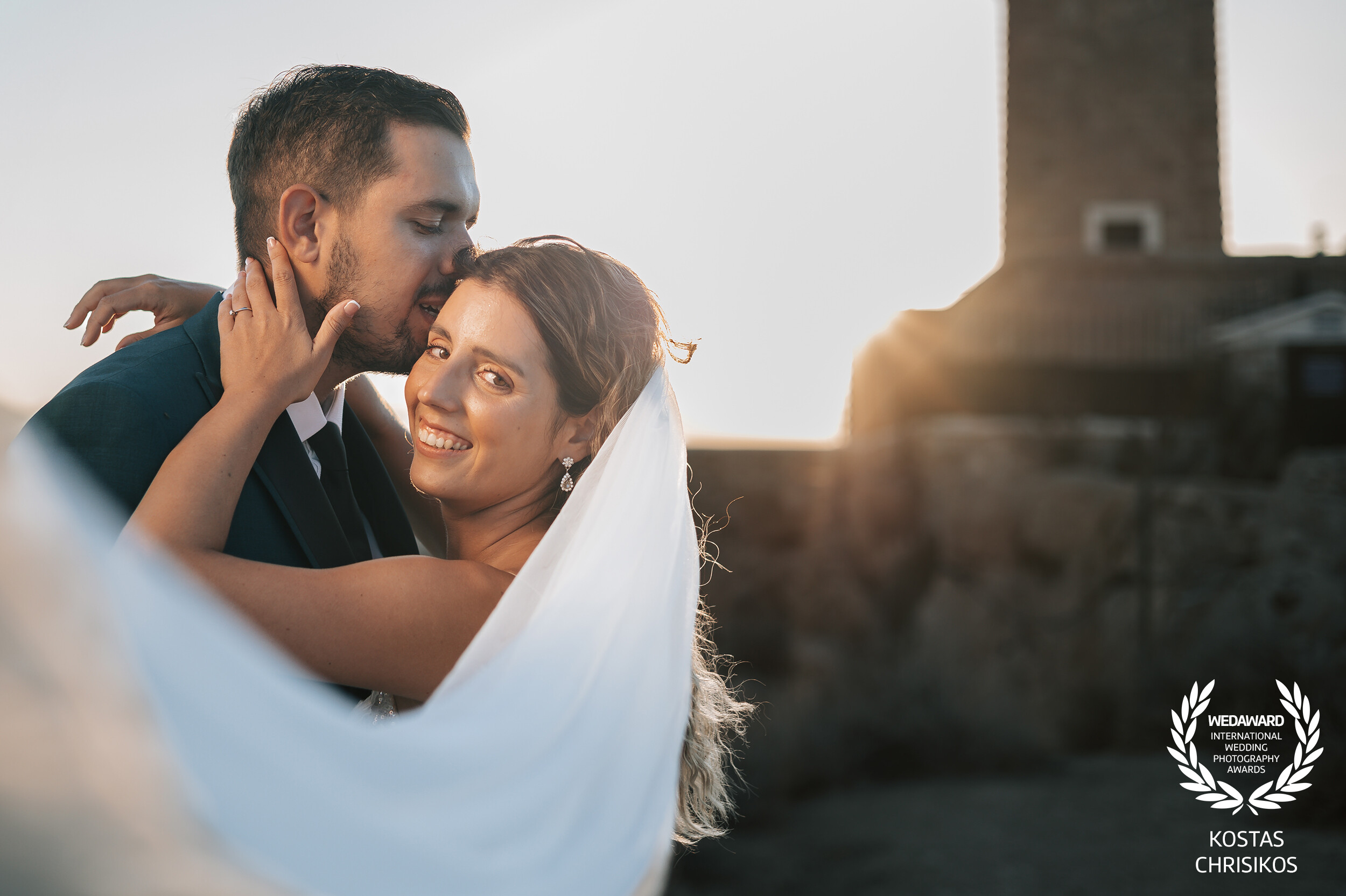 This moment was captured during the after-wedding photoshoot of this beautiful couple, by a lighthouse just outside Loutraki, Corinth.