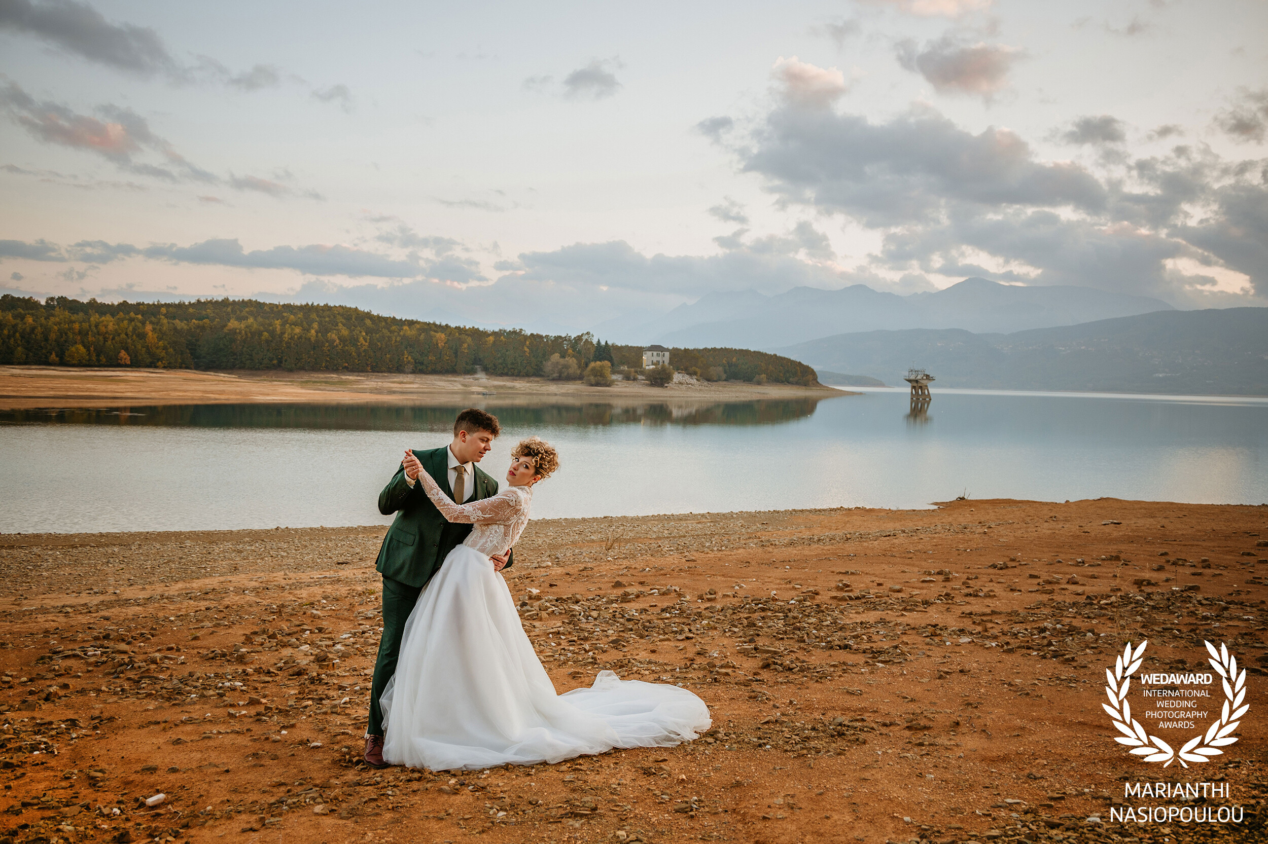 A quiet, graceful breath before the sun slipped away. Julia and Konstantinos by Lake Plastira, wrapped in the calm light of October, dancing as if the world around them paused just for this moment. The water mirrored their tenderness, the mountains held their stillness, and the landscape became part of their story — a fleeting instant that speaks softly yet lingers powerfully.