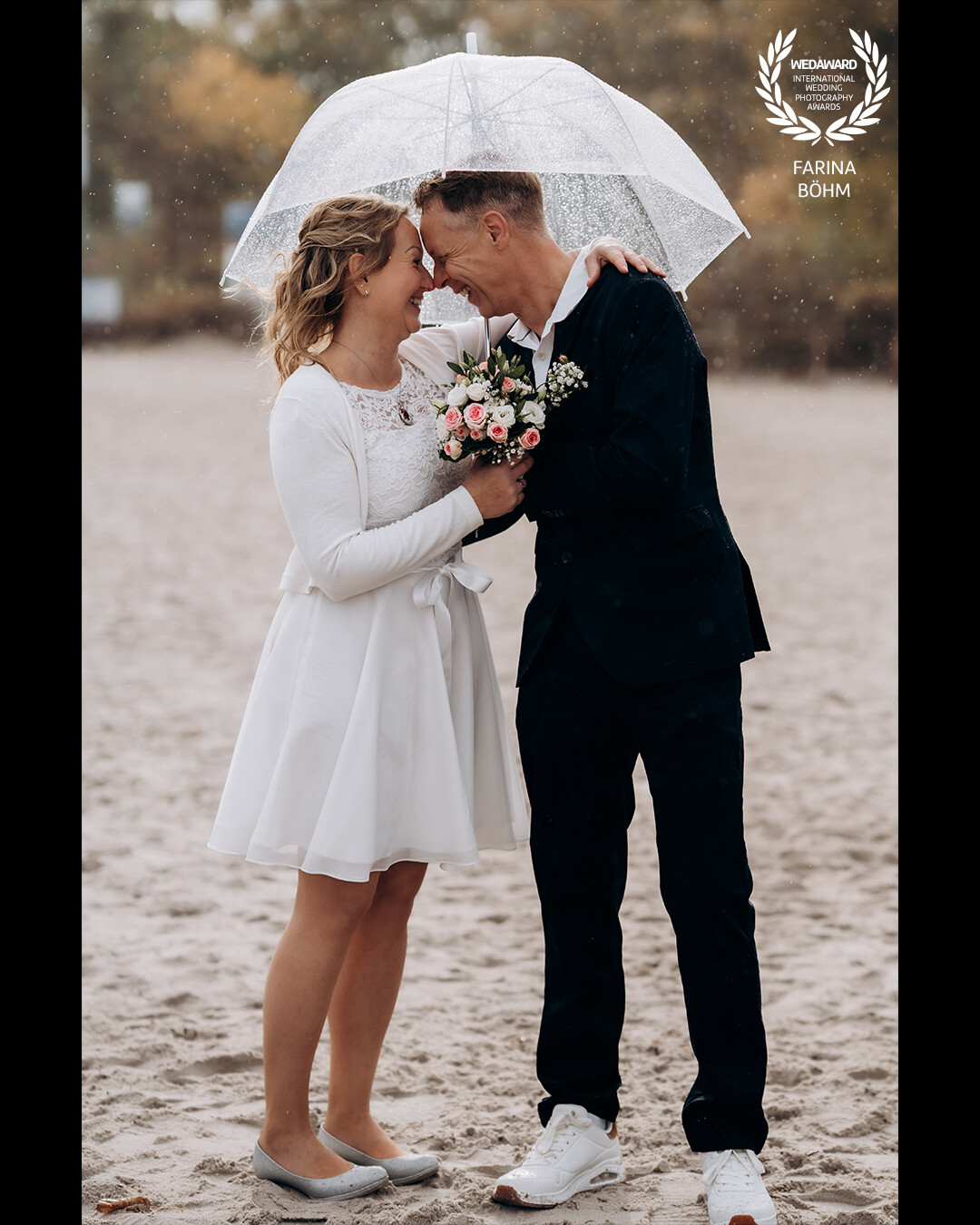 Under a soft grey sky and the sound of rain, they said “yes” to a lifetime together at Timmendorfer Strand. Wrapped in a single umbrella, surrounded by wind, waves, and raindrops, they didn’t try to escape the storm — they embraced it.