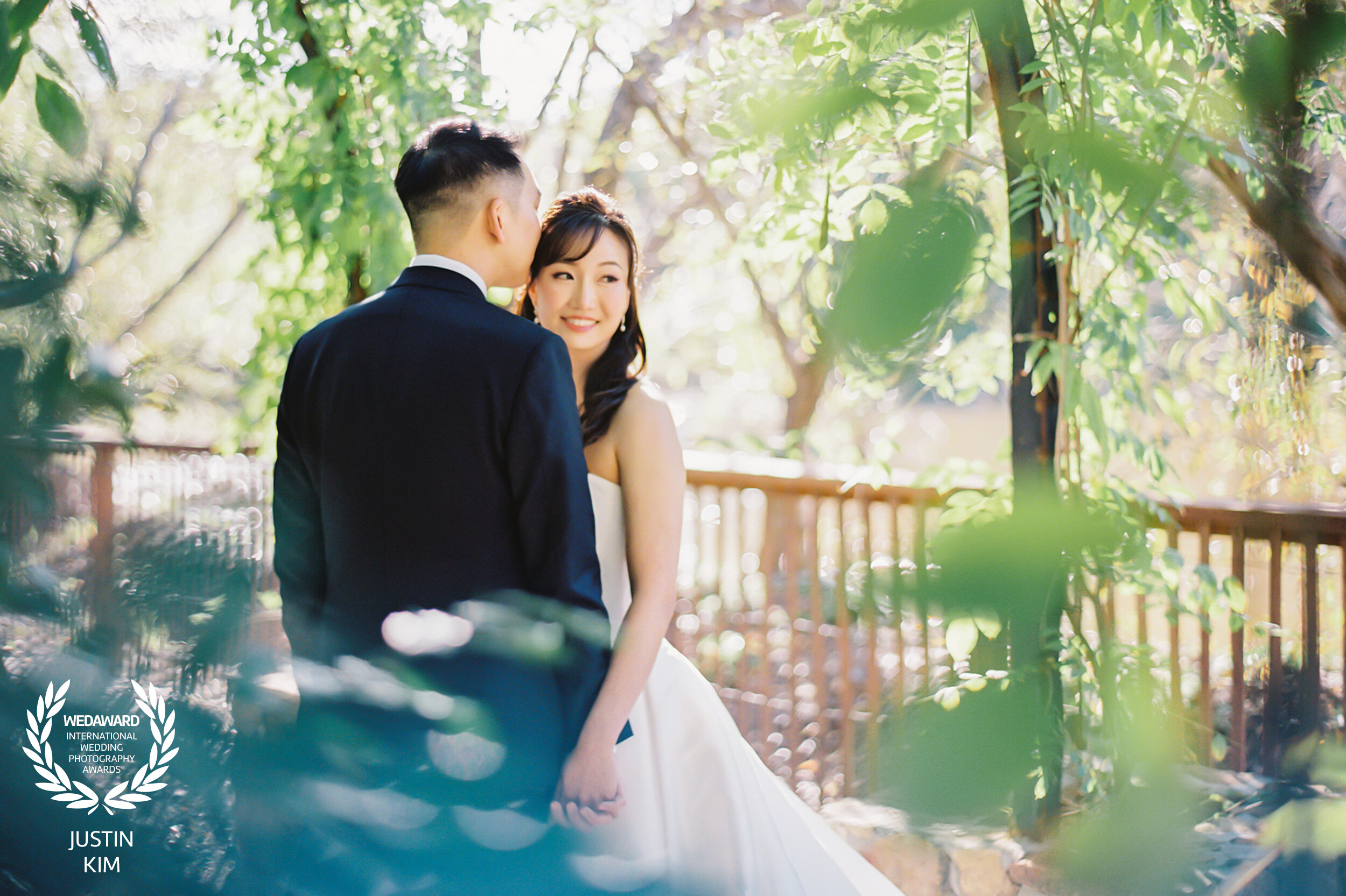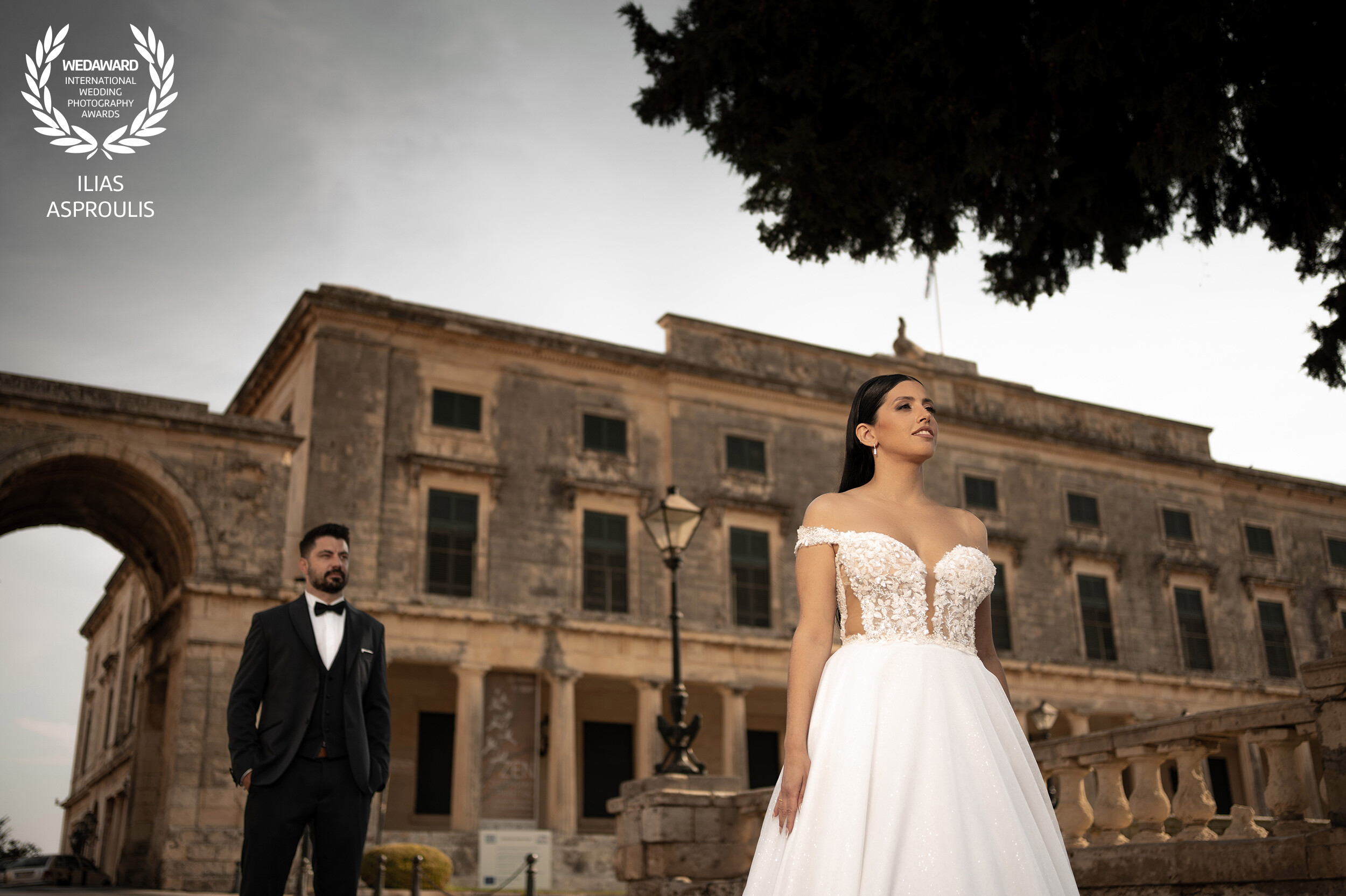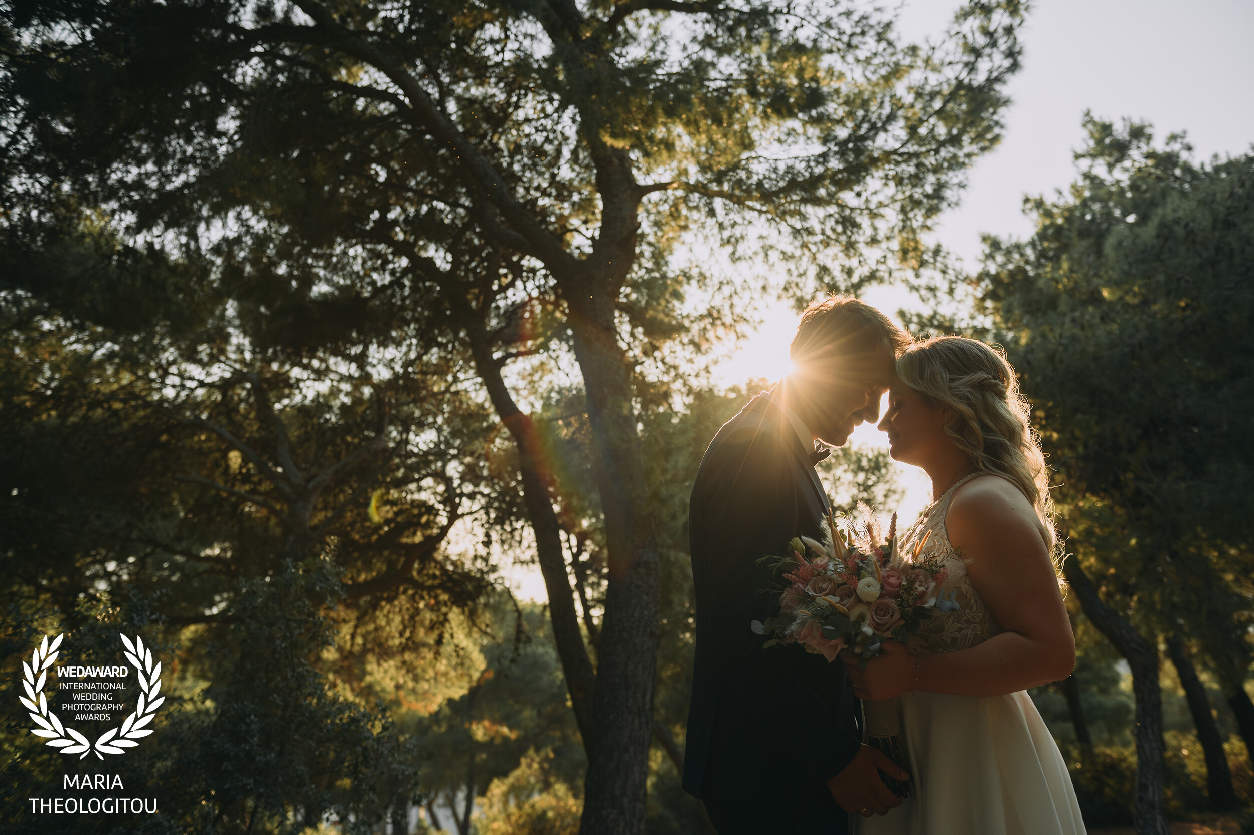 In Athens, surrounded by trees and bathed in warm sunlight, their wedding day unfolded gently — a quiet moment of love, light, and timeless elegance.
