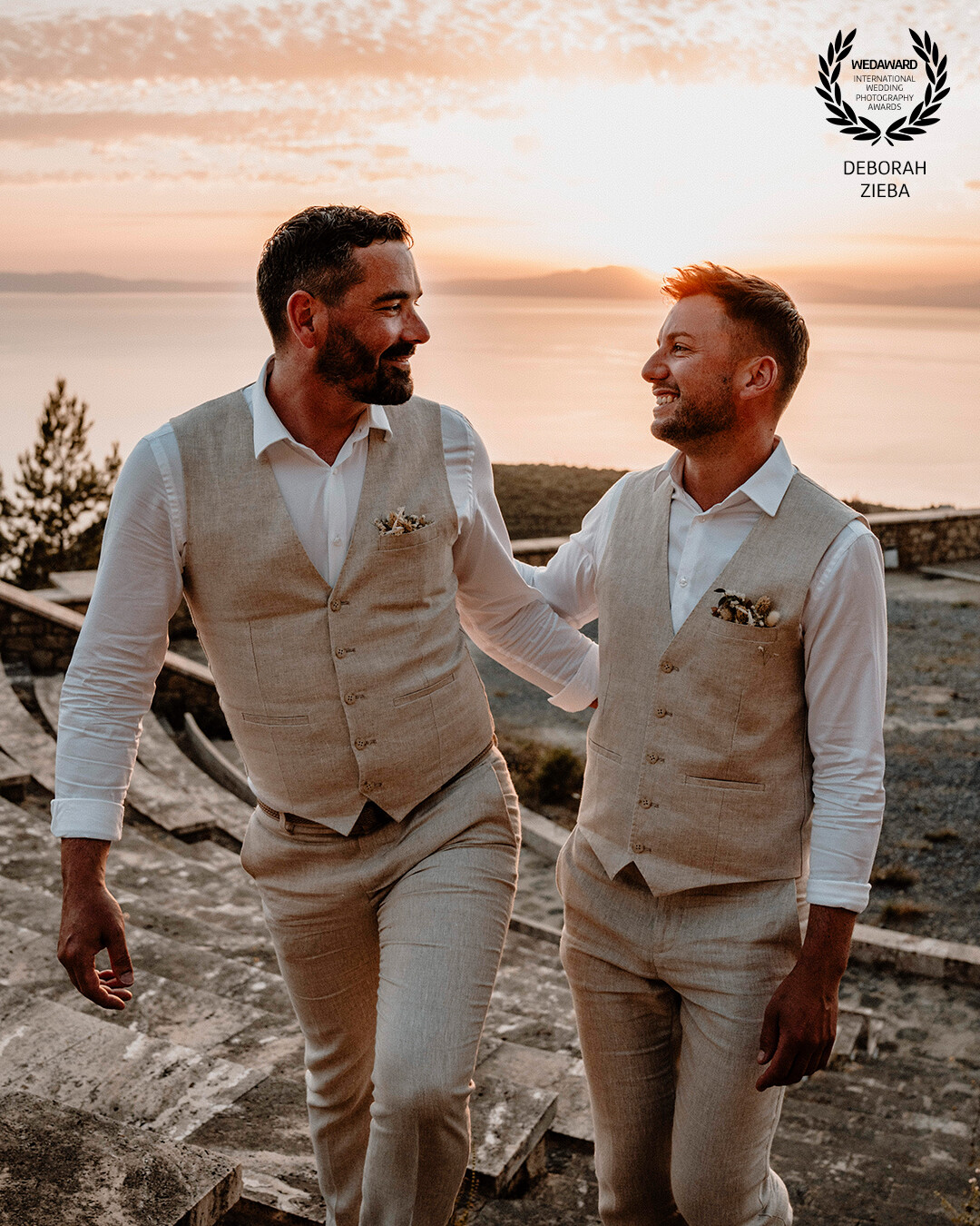 A secret ceremony location in Greece, revealed only at the last moment. Pure euphoria, raw emotion, and two hearts walking into their forever.