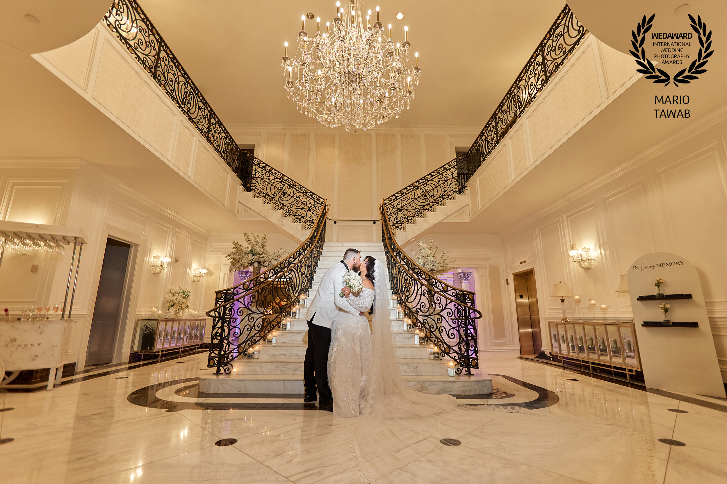 Where elegance meets emotion, this moment was captured in pure luxury, a grand staircase, warm light, and a couple whose love feels timeless, effortless, and real.