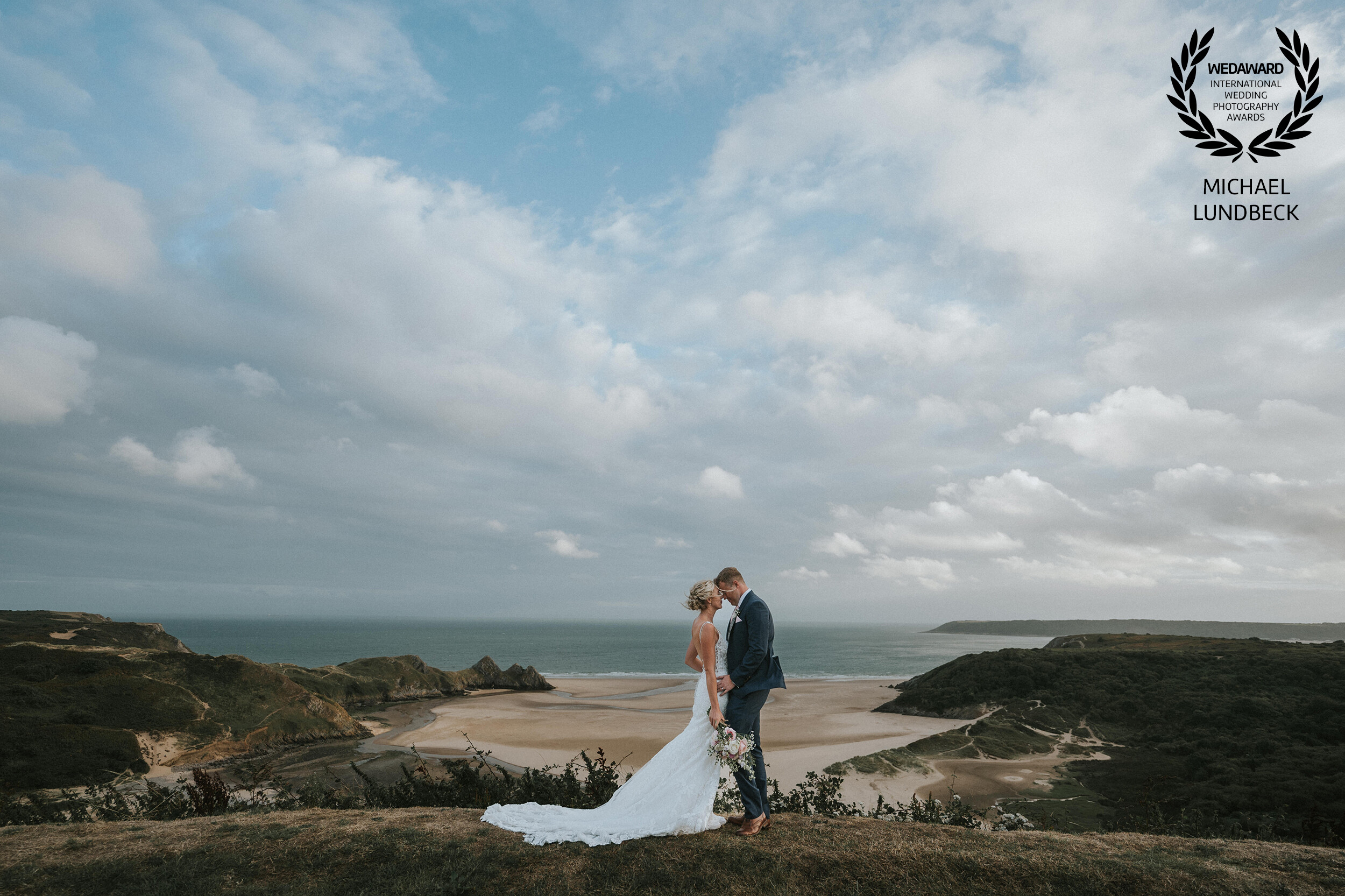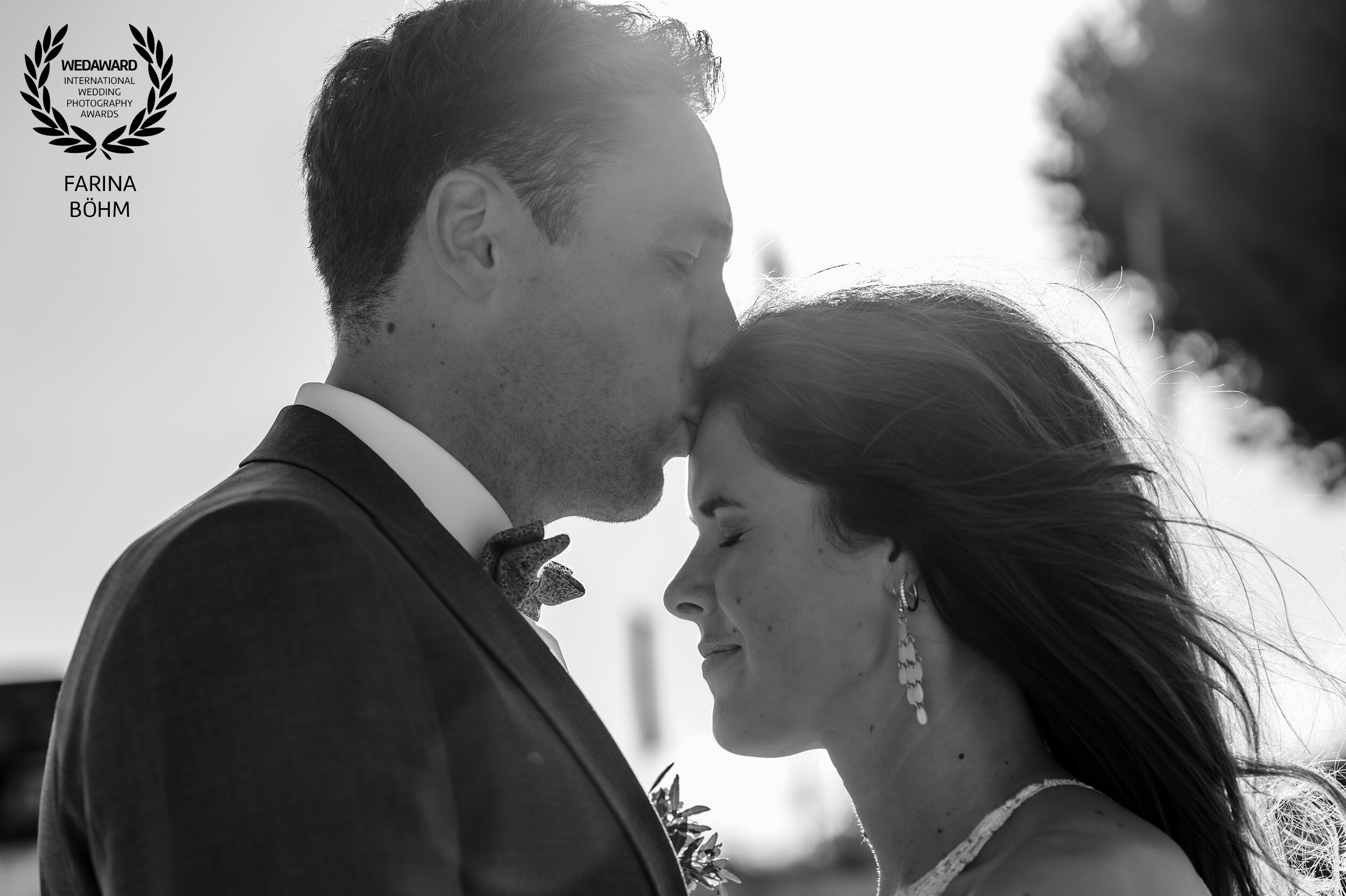This intimate moment was captured during a golden hour wedding session on the beach of Scharbeutz at the Baltic Sea. As the sun dipped low, it wrapped the couple in soft, glowing light, creating a serene and almost cinematic atmosphere. The gentle sea breeze moved through the bride’s hair while the groom leaned in for a quiet, tender kiss on her forehead. The black-and-white treatment emphasizes emotion, texture, and connection, allowing the viewer to focus entirely on the feeling of calm, love, and closeness shared between them. A timeless scene shaped by light, nature, and genuine affection.