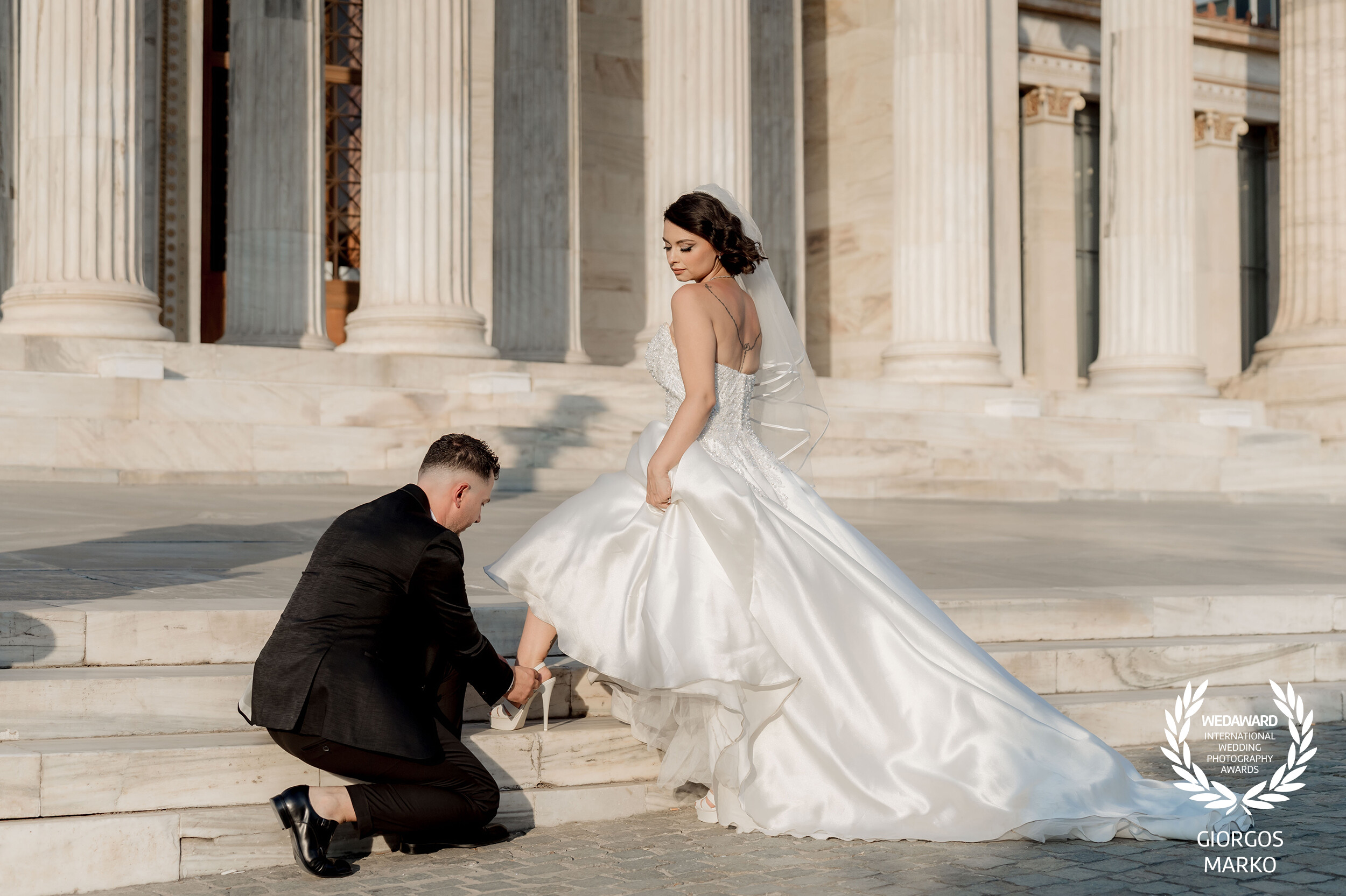 Αυτή η φωτογραφία ξεχειλίζει από ζωή, χαρά και αυθεντική ανθρώπινη ενέργεια. Το ζευγάρι στο επίκεντρο, αγκαλιασμένο με φως και συναίσθημα, περιβάλλεται από αυθόρμητους θεατές που μετατρέπουν τη σκηνή σε μικρή γιορτή του έρωτα μέσα στα σοκάκια της πόλης. Η σύνθεση θυμίζει στιγμιότυπο από ταινία, όπου η αγάπη διακόπτει για λίγο την καθημερινότητα και γίνεται υπόθεση όλων.